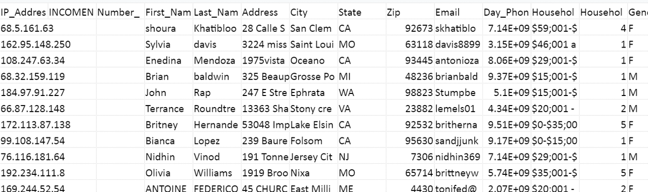 поля:ID ,ФИО,ДР,Последний посещение,Город(Страна),Дом. тел.,Моб. тел.,Доп. контакты,Карьера,Образование,Родственники,Аватарка