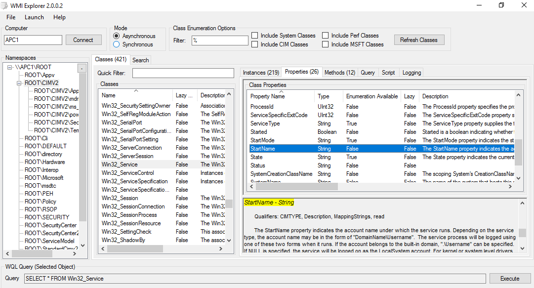 Пример: wmic service где (state = "running") получить заголовок, имя, startmode